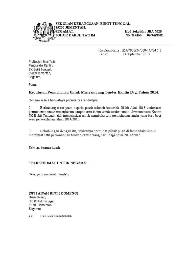 Contoh Surat Perlanjutan Sewa Kantin Sekolah. Sekiranya anda menyebut lebih daripada satu kejadian, bahagikannya kepada 2 perenggan berbeza dan akhiri perenggan dengan kualiti yang perlu diserlahkan dengan setiap contoh. Jika anda pernah diminta untuk menulis surat rujukan watak, anda tahu kebimbangan yang boleh dibuat oleh permintaan itu. Pemikiran pertama ialah biasanya "bagaimana dalam dunia anda menulis satu?" Dan pemikiran ini dengan cepat diikuti oleh soalan seperti "apa yang perlu dilakukan Saya katakan?" Dan "Bagaimana jika saya mengatakan sesuatu yang salah dan membuat orang itu kelihatan buruk?"