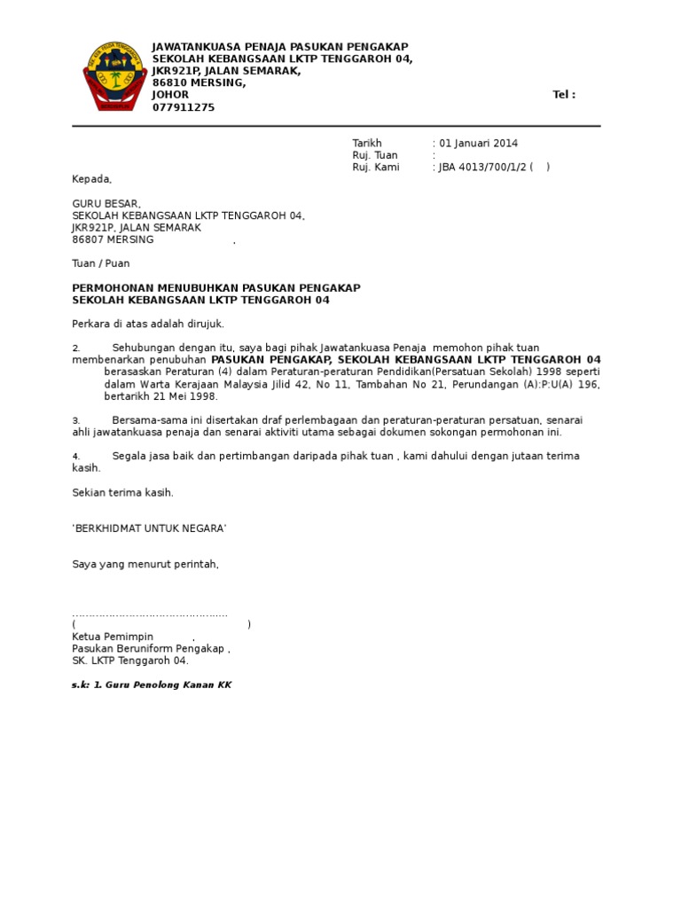 Contoh Surat Rasmi Persatuan Pengakap Ke Ipd Keningau